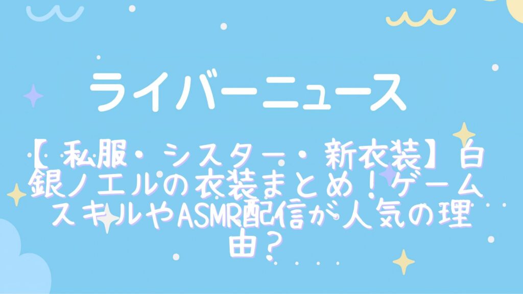 VTuberの「白銀ノエル」さんをご存知でしょうか? ゲーム実況や歌ってみたなど多くのファンを獲得し、チャンネル登録者数200万人を突破する成功を収めています。 白銀ノエルさんは配信活動を通じて多彩な衣装を披露しており、ファンや視聴者の間で「衣装デ... -