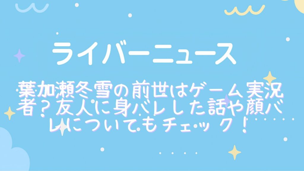 葉加瀬冬雪の前世はゲーム実況者?友人に身バレした話や顔バレについてもチェック!